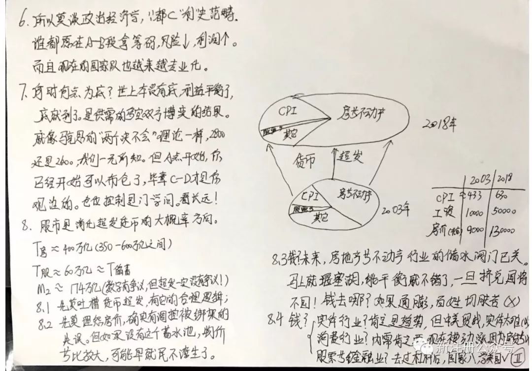 3.1股市预测是不测而测,也就是大趋势可测,具体点位不可测。首先我认为肯定没人能准确预测顶和底的具体点位,这是不测的;其次肯定又有趋势可寻。如果活在趋势中,就可无违而无不为,大概率取得物质回报;但如果逆势而为,就会事倍功半,难得成功。图7-8是2018.10.11股市大跌时发的朋友圈,这次大跌对阴霾已久的散户无疑造成巨大恐慌,但是大趋势是进入否极泰来期,触底反弹,只是个时间问题。所以,那会儿我建议朋友用合理的仓位策略布仓,以1800点甚至1600点为极值,逢低买入。我的逻辑也在图7-8中,这和对房市的判断有关联。