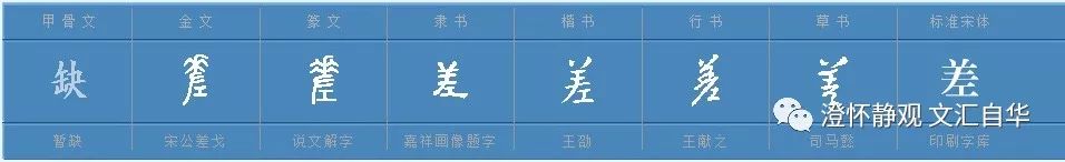 我比较同意上文作者的描述,“人”头上带的应该是装饰品,可能是花花草草之类的,或者是祭祀头戴的特殊含义的头饰,但应该不是羊头。许多学者解释为头上顶着羊头就是美,我认为不妥,首先羊头骨可以挂在家里,但是很少有人把它顶在头上,非洲也没有发现过这种行为。顶头上太重不说,而且不容易固定和移动等。还有学者认为是羊大为美,这句话说的可能没错,可能羊大了因为脂肪多而美味;也可能羊大了,其皮毛多了也美。羊作为人类最早驯养的温顺动物之一,因为其比较干净而又温顺,所以是祭祀的首选祭品之一。但是,羊大为美的话,“羞”“差”“盖”等的羊字旁的阐释就和本字有冲突啦。如下图: