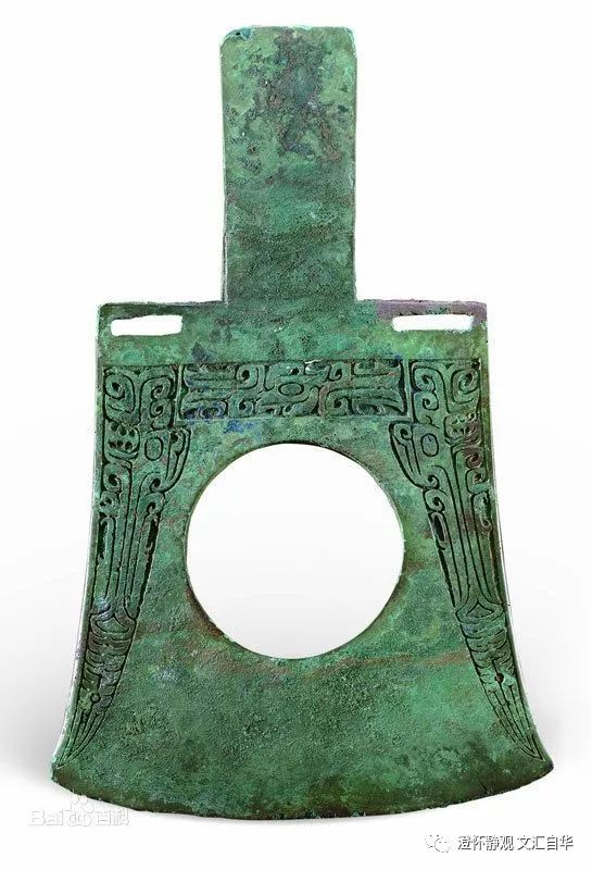所以如果是代表斧子大可以用斧子的象形字表示。这个符号像是一种特殊的斧子,这种客观存在在古代叫做——钺。我给大家粘贴两张图片,大家肯定见过这个可爱的古代文物: