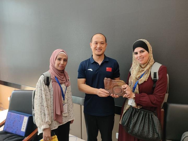讲课中,孙老师与学员教学相长,沟通顺畅,频繁互动,讨论热烈,赢得学员的尊重。在介绍文房四宝时,孙老师向学员介绍了青州红丝砚、广饶齐笔、临朐桑皮纸等较有代表性的齐鲁文房四宝,随后邀请学员上台触摸古法造纸、感受研墨过程、体验毛笔书写,推动学员在可感环境下,较有带入性的感悟中华书写文化。此次培训为国际友人介绍了中华优秀传统文化的发展经验,让学员感受到国学魅力,为推动文化自信和建立友好邦交做出了一定贡献。