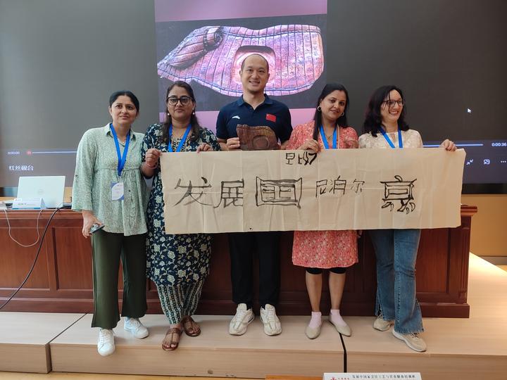 培训中,孙逸结合学员国家的文化旅游特色,有针对性的选择相似点,同中国文化进行对比交流。如在分享甲骨文“酒”字来源时,提及仰韶文化中小口尖底瓶,就同乌干达学员交流其国家的Waragi水果酒,瞬间引起了学员共鸣,降低了学员对中华文化理解难度,拉近了与学员的距离,增强了学员对中华传统优秀文化的认同感和友好度。通过培训,学员初步了解到中华古文字从甲骨文到金文、篆书,再由隶书到楷书和草书的发展历程;结合中国地理环境和烹饪食材产地地图的关系,初步了解到中国农业文明的发展历程。