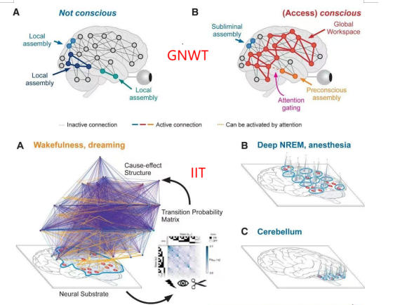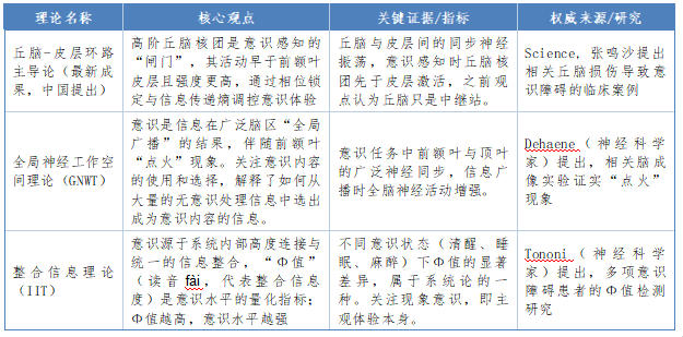 此外,还有几种主流的理论,比如:①循环处理理论(Recurrent Processing Theory, RPT)由维克多·拉姆(Victor Lamme)等人提出。②预测处理(Predictive Processing)和神经表征(Neural Representationalism, NREP)主要由卡尔·弗里斯顿(Karl Friston)等人提出。③树突整合理论(Dendritic Integration Theory, DIT)由克里斯蒂·德尔菲(Kristof Koch)等人提出。我们不展开讨论,仅做罗列,感兴趣的朋友可以深入研究。主流理论的修正与补充。以上理论各有异同,但2025年《Nature》的一篇对256名受试者的跨国合作研究,对IIT和GNWT两大理论提出了修正:(1)整合信息理论(IIT)预测的后部脑区持续同步现象未被实验证实;(2)全局神经工作空间理论(GNWT)预期的前额叶“点火”仅短暂发生,并非持续状态;(3)意识内容并非集中编码,而是分散于视觉区、腹颞叶和下额叶;(4)屏状核作为大脑连接中枢,为多模态信息整合提供基础,被证实是灵长类意识产生的关键结构。
