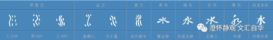 那么,既然水被古人如此推崇,它在古代的写法究竟是如何的呢?让我们看下图了解一下水的字体流变: