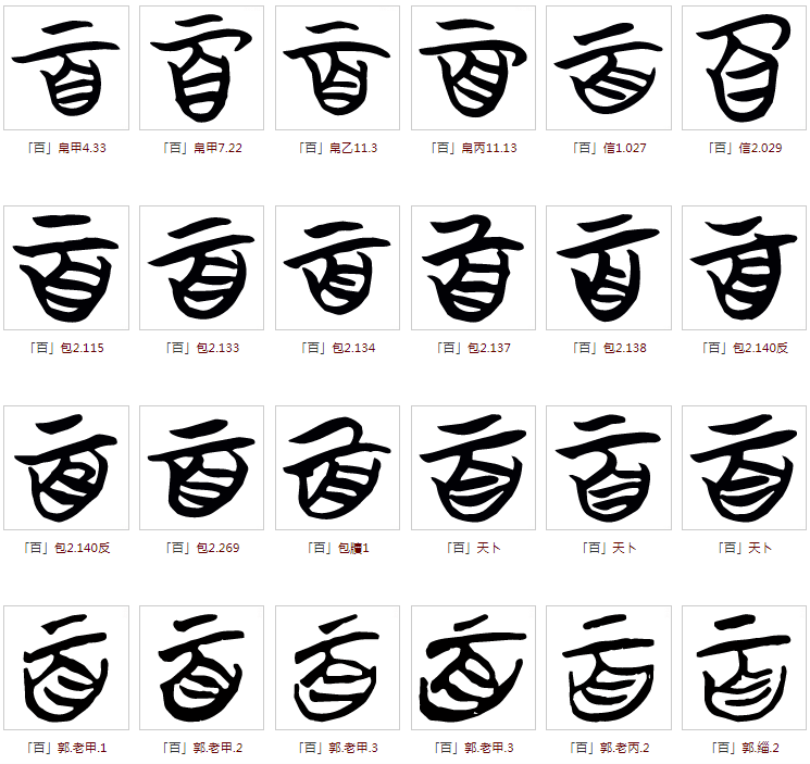 (3)百 (总7)——说不完道不尽的,形容多。郭店楚简原字如下: