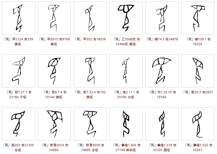 見的金文字形承袭甲骨文字形,部分金文字形列举如下: