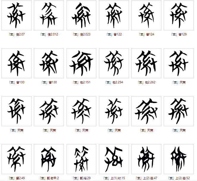 简帛版因出土文物较多,写法亦众多,部分字形列举如下: