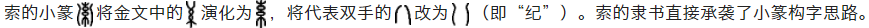 索的秦系简牍字形比较趋近于今日楷体的索字,双手