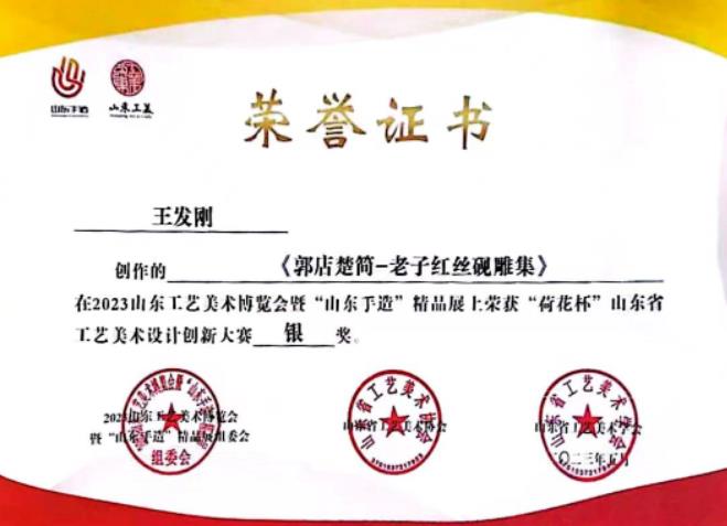前言:由山东省工业和信息化厅、中共山东省委宣传部、山东省商务厅主办的2023山东工艺美术博览会暨“山东手造”精品展在济南舜耕国际会展中心圆满举办。“顽石斋”创始人——王发刚老师 携作品《郭店楚简·老子 红丝砚雕集》亮相泉城。
