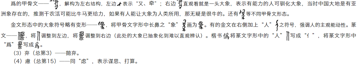 “忄為”字释义暂不可寻,故该字暂无法明确意义,暂以学术界较为公认的“偽”字做参考(后有灵感再更新解释)。“爲”是“僞”“撝”二字的本字,字形流变过程: