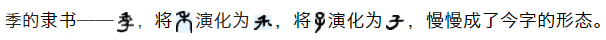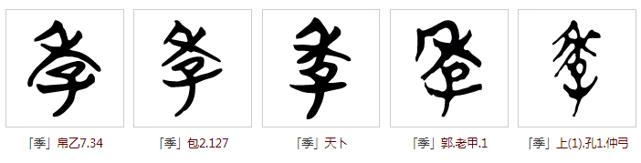 ,承续甲骨文、金文字形。《说文解字》曰:“季,少称也”,表示对同辈中年纪最轻者的称呼。部分简帛字形列举如下: