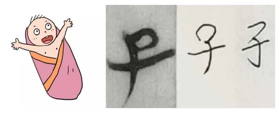 ,将襁褓婴儿双臂统一为一条横线,逐渐有了现在的字形。